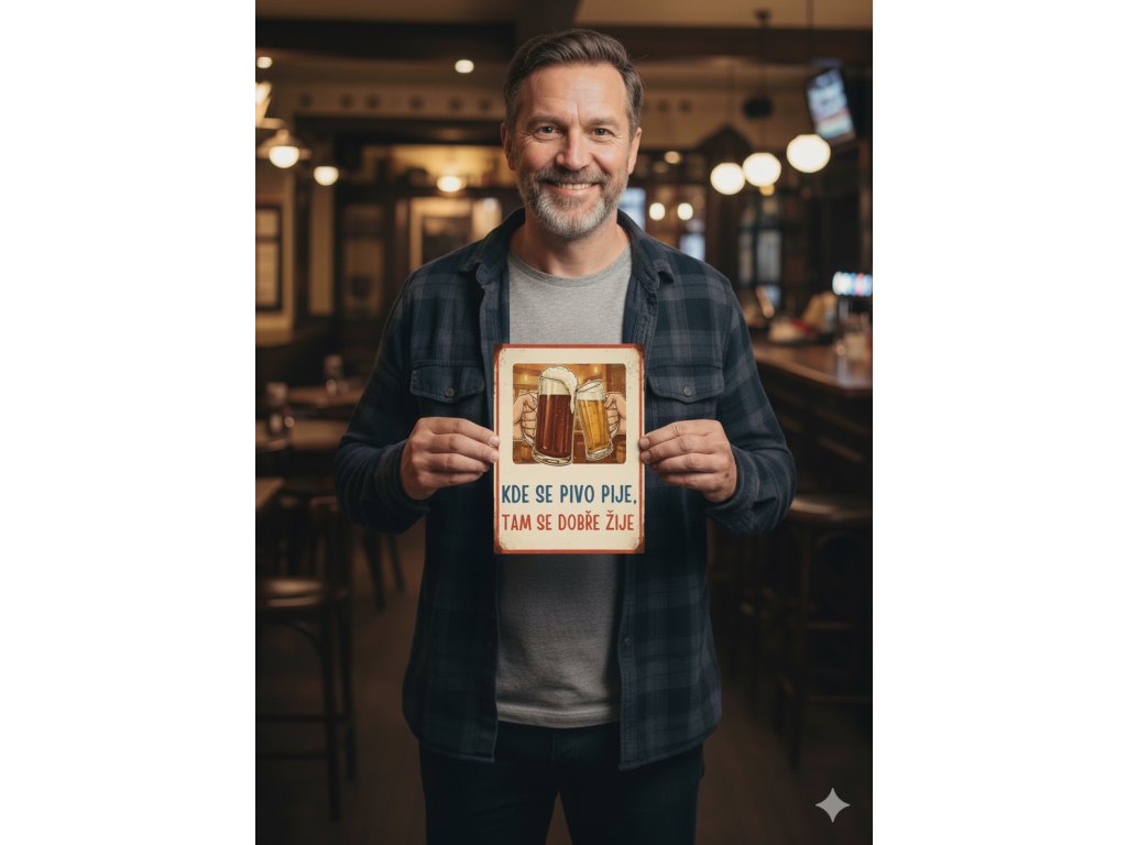 Plechová cedule Kde se pivo pije...