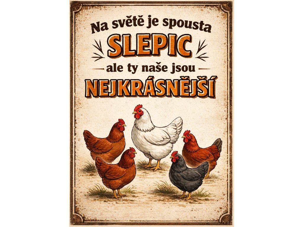 Plechová cedule Na světě je spousta slepic...