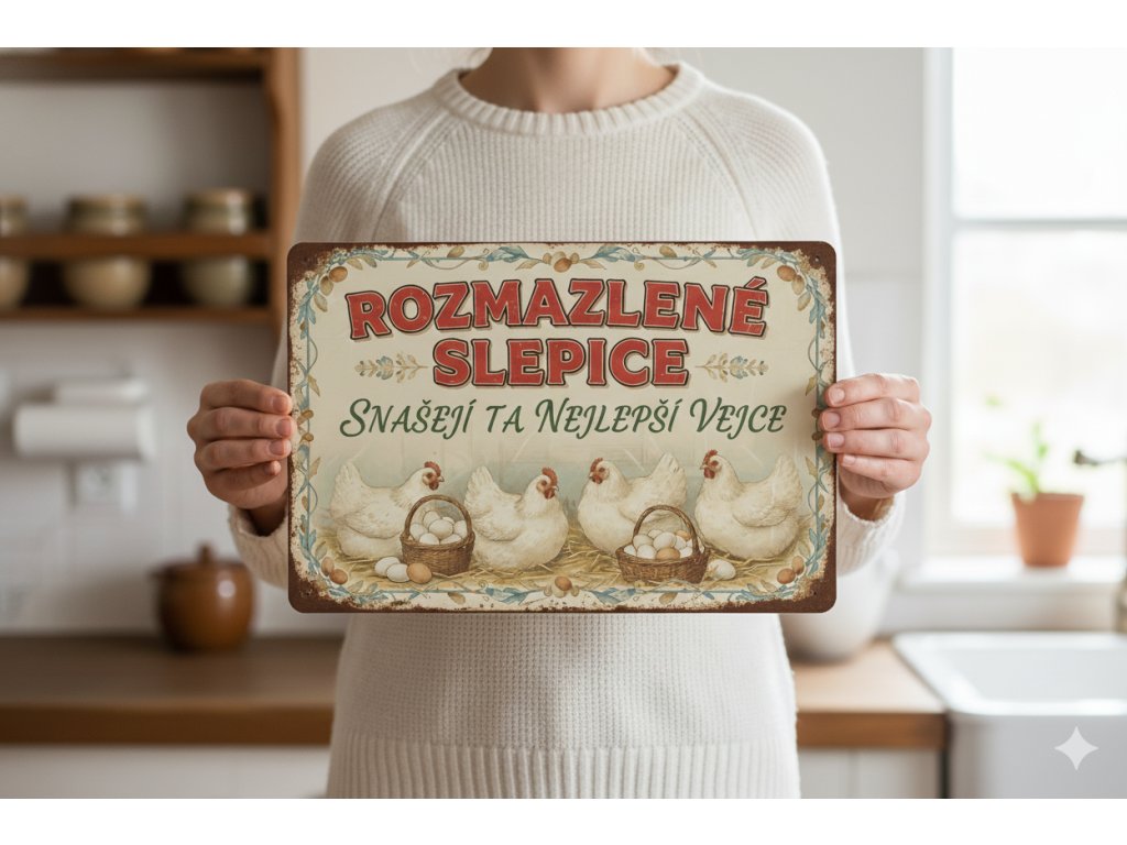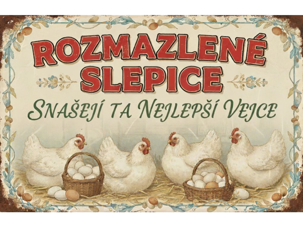 Plechová cedule Rozmazlené slepice