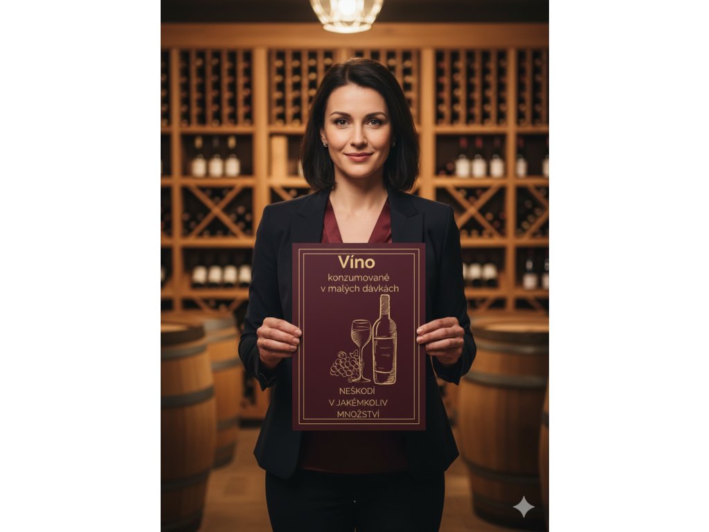 Plechová cedule Víno konzumované v malých dávkách