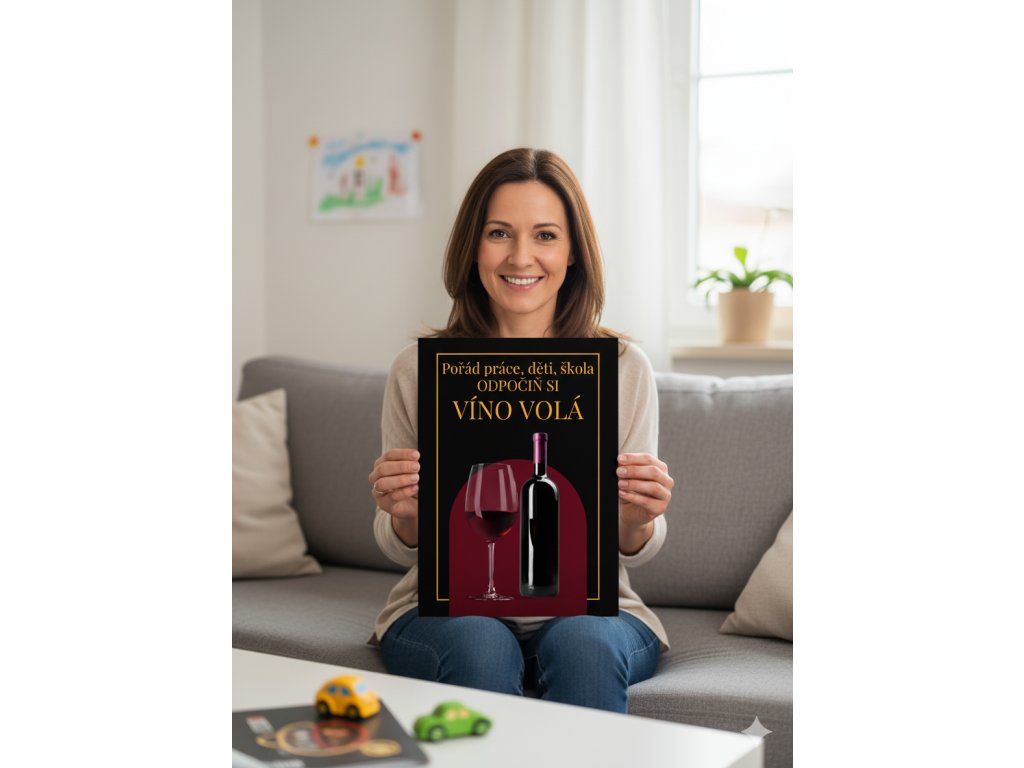 Plechová cedule Víno volá